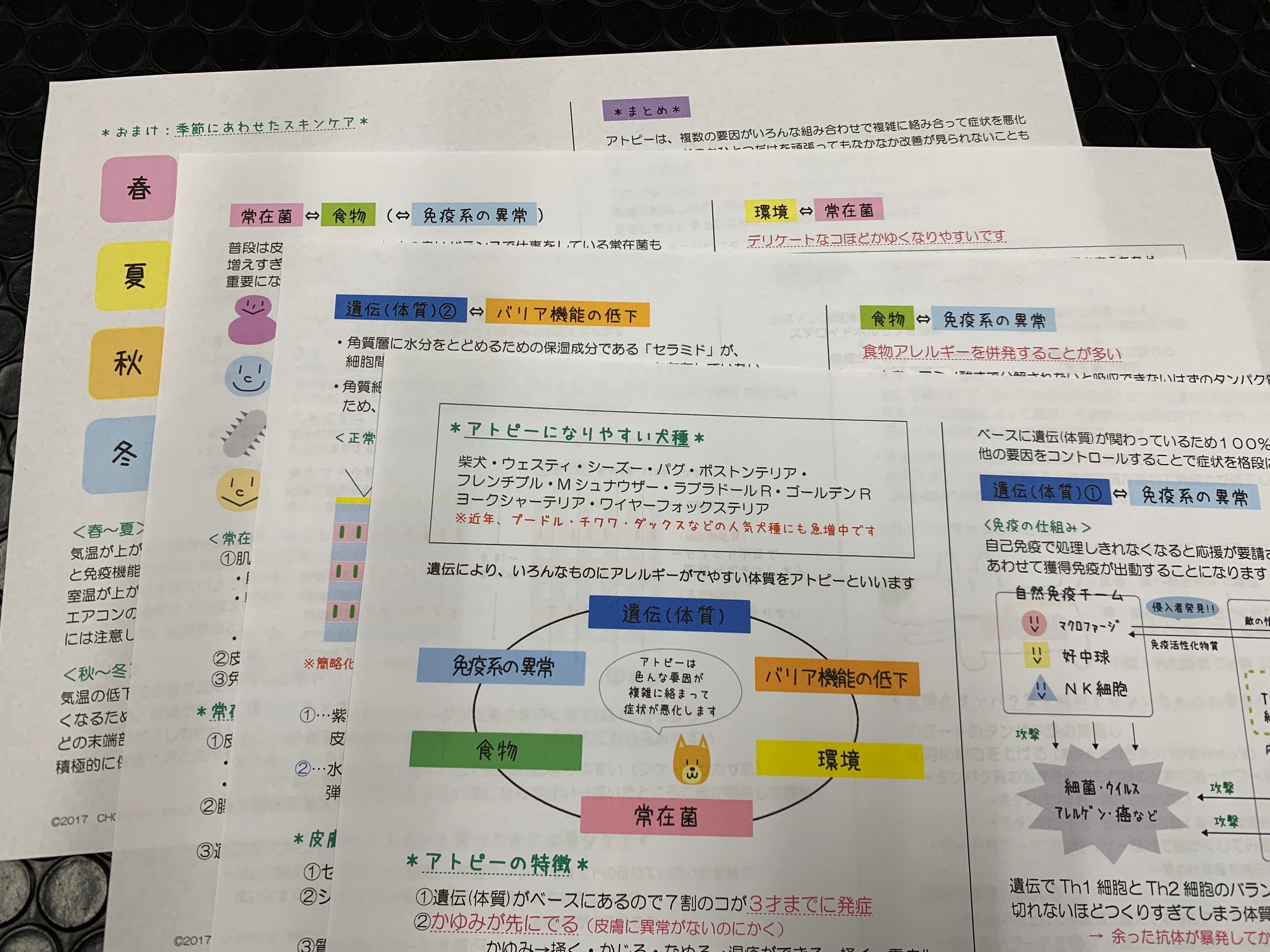 皮膚科専門獣医の先生のセミナーで学んだことをベースに、ほか数種類のセミナーで学んだことを絡めて、アトピーの仕組みとお家でできるケアについて項目ごとにまとめています